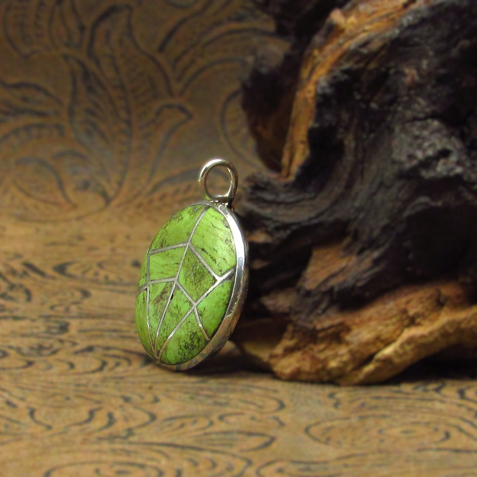 Spider Web Pattern Zuni Inlay Gaspeite Sterling Silver Pendant