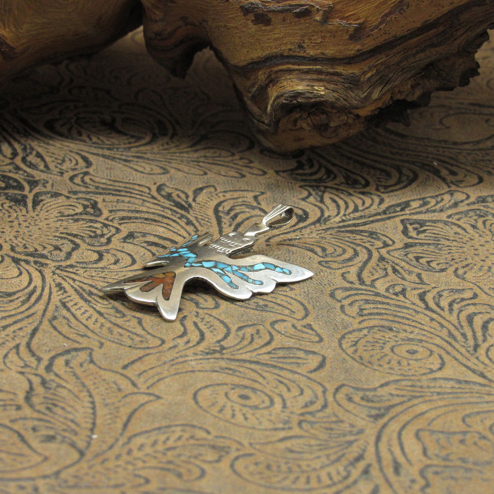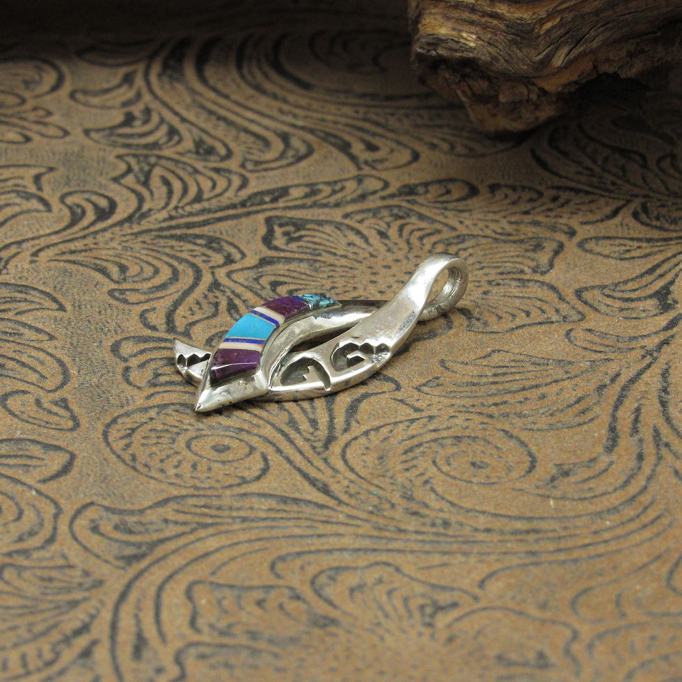Ervin Hoskie Turquoise Multi Stone Inlay Cast Crossover Sterling Silver Pendant