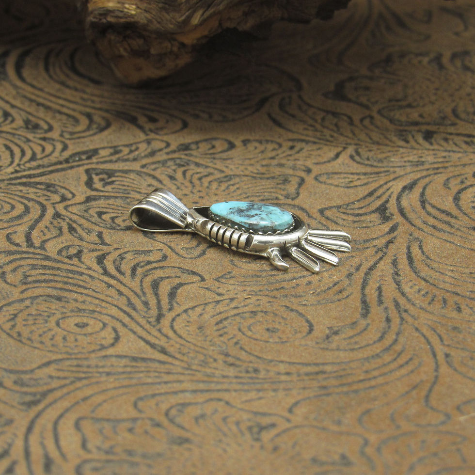 *Sterling Silver Bear Paw Pendant With Teardrop Turquoise Stone