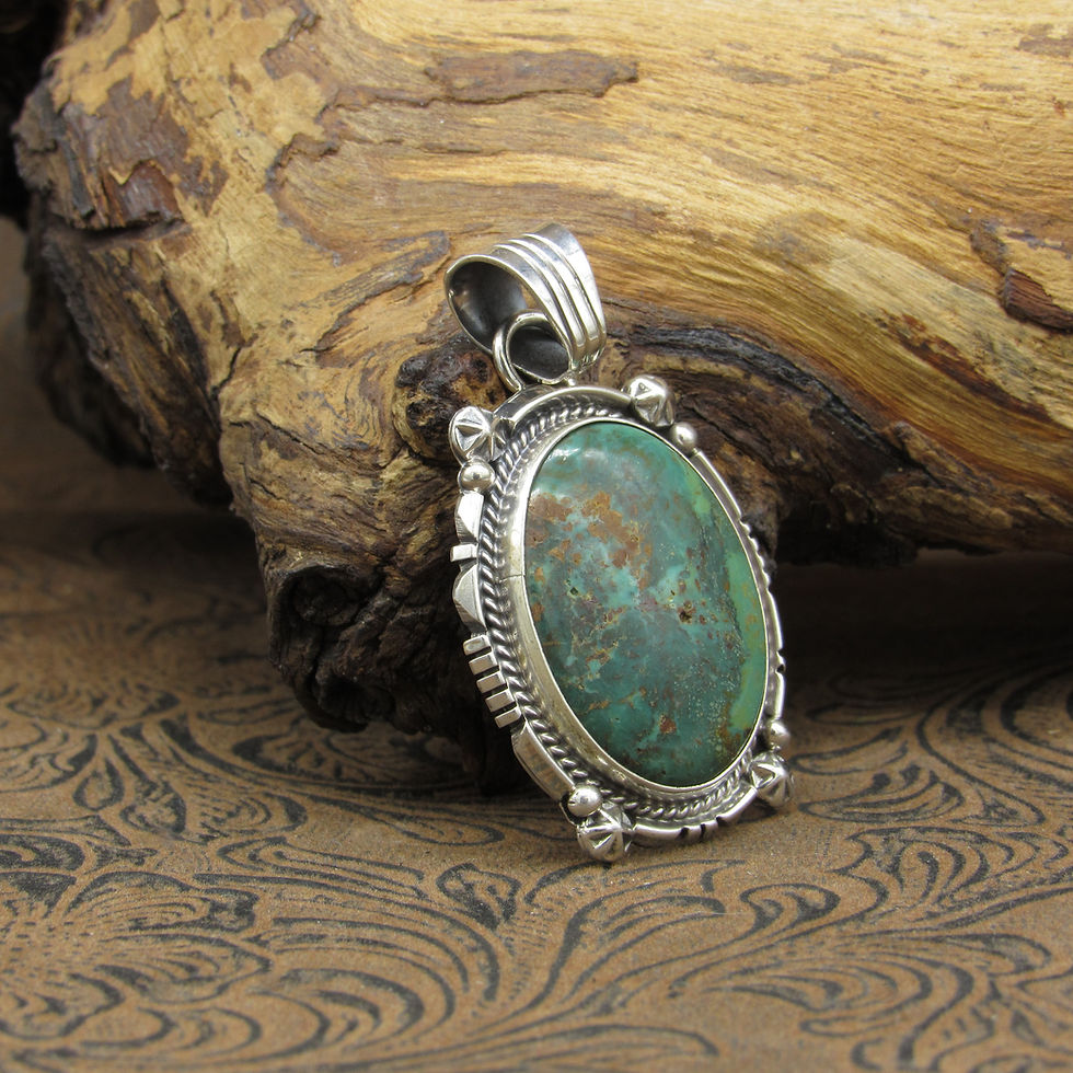 Navajo Sterling Silver Green Turquoise Oval Pendant By Running Bear Workshop
