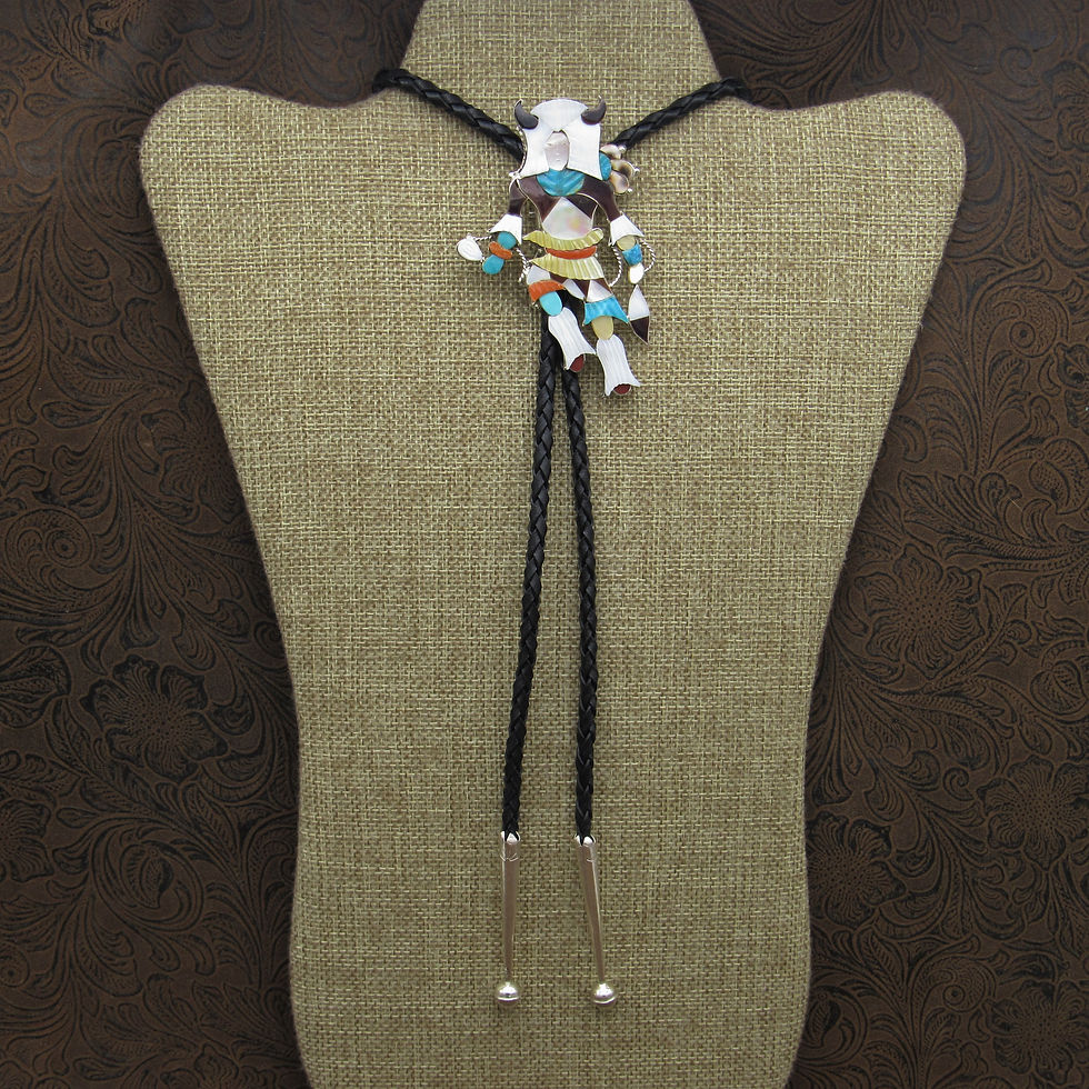 *Zuni Sterling Silver Multi-Stone Inlay Eagle Dancer Bolo Tie