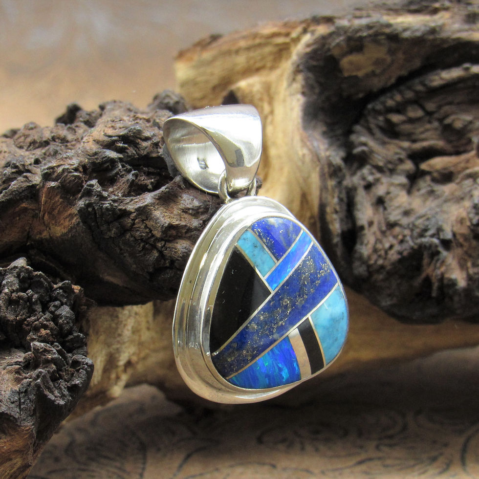*Marquise Shape Multi-Stone Inlay and Sterling Silver Pendant by Larry Leslie